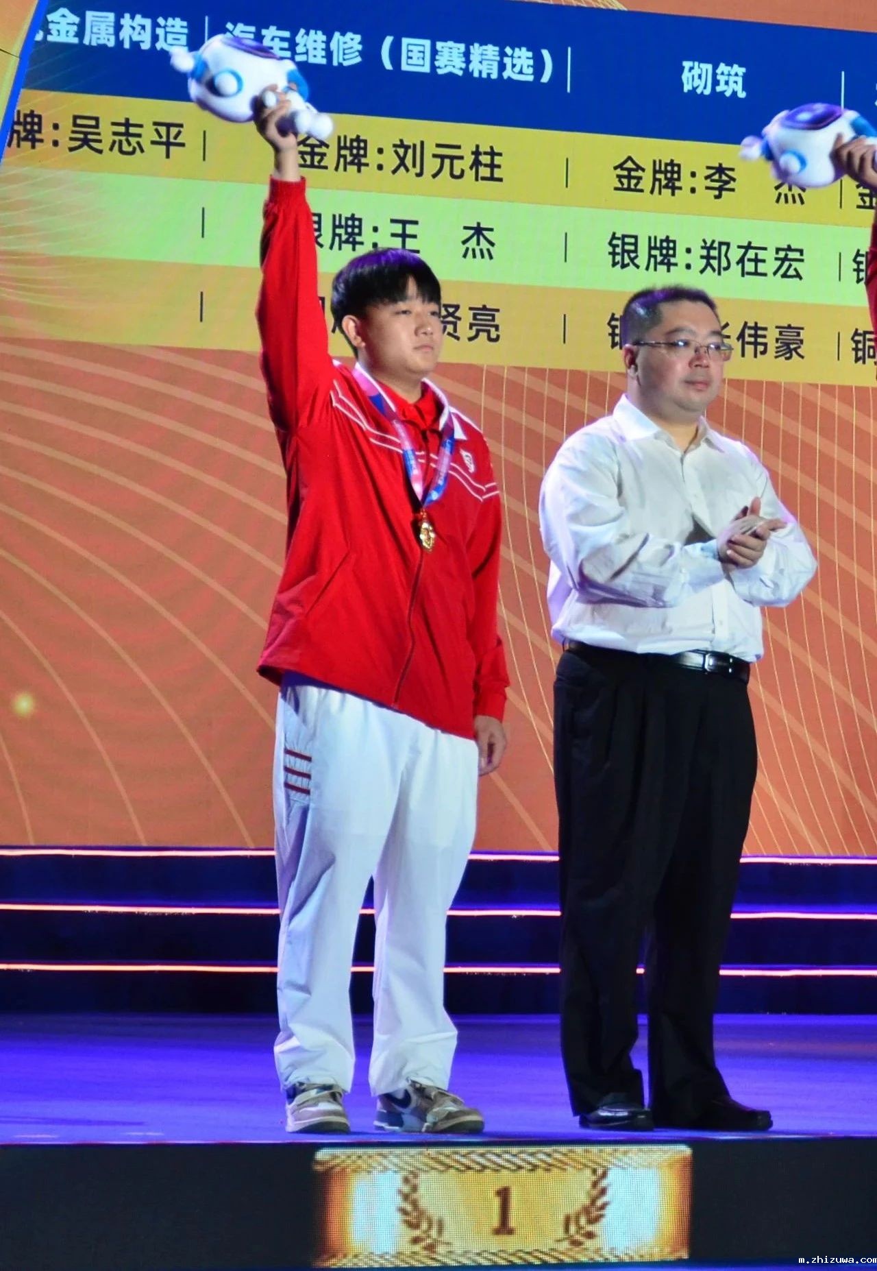 ▲吴志平(左一)获建筑金属构造(世赛选拔)金牌